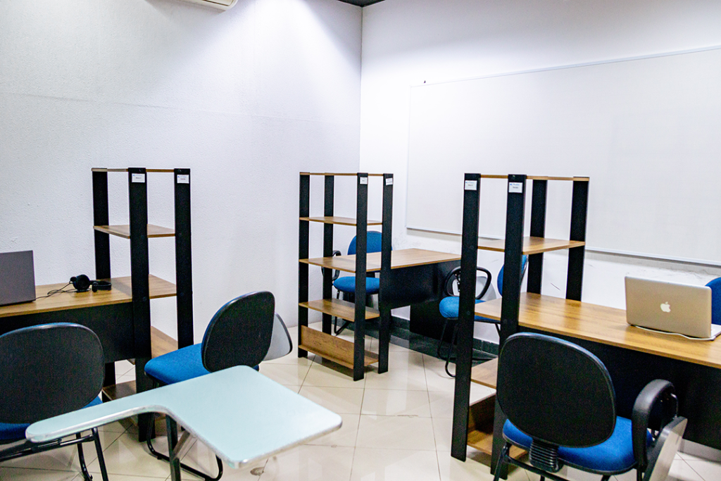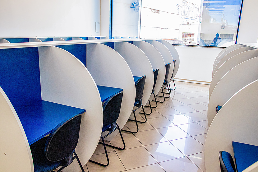 Nossa área de estudos foi criada especialmente para quem busca um ambiente tranquilo, organizado e inspirador para se concentrar ao máximo. O local conta com baias individualizadas que proporcionam privacidade e foco, tornando o momento de estudo muito mais produtivo. Pensando no seu conforto, cada espaço possui tomada própria para carregar celular, tablet ou notebook sempre que necessário. E para completar, os alunos matriculados têm acesso à nossa rede Wi-Fi, fornecendo conexão para pesquisas, plataformas de estudo e exercícios online. É um cantinho pensado com carinho para que você se sinta à vontade, motivado e totalmente focado em aprender mais a cada dia no cursinho.